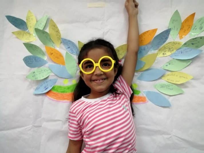 An example story shared during the course is the charming ‘Perfectly Norman’ by Tom Percival, a bold and uplifting book about daring to be different and having the courage to dance to your own tune. The story is shared and discussed as a group, followed by an activity which explores the things that we should celebrate about ourselves. The children make their own pair of ‘wonderful wings’. decorating them with all the things that make them special.